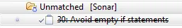 Now the Eclipse Sonar plugin is reading the identified issues from the Sonar server and integrates them in the editor view: