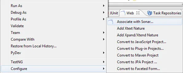 To make use of the Sonar perspective, the Java project needs to be linked to the Sonar project.