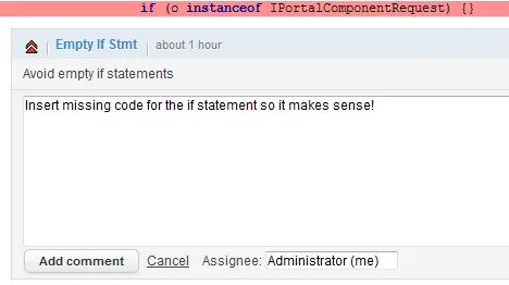 Assume that besides the actual developers you have a code quality or coordination group that analyzes code and uses Sonar for doing so. Now Sonar shows all these violations, errors, bugs and so on, but how to communicate to the developer that he has to act on the violation? Or to guide him with documentation or how to find out why the code is written like it is? Mylyn can be used to enable that kind of collaboration. The Sonar web interface allows creating for every violation to add a comment and assign the violation to a specific user.