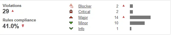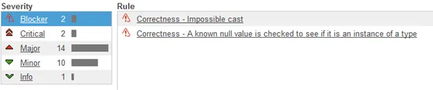Compared to the source code analysis, findbugs now shows 2 blockers and 2 critical bugs. Unlikely that the program won`t crash when executed.