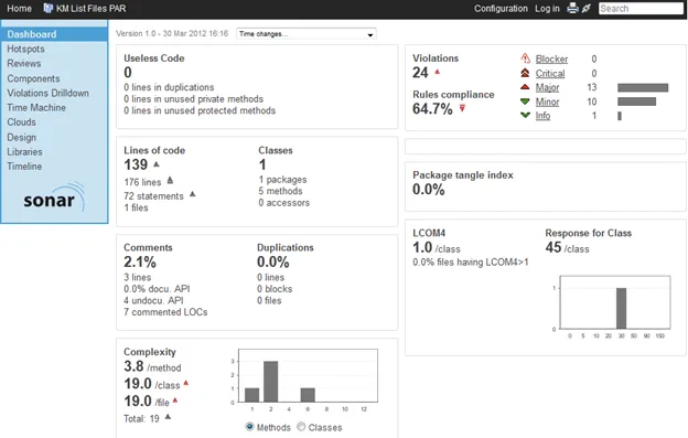 From an overview page a developer can drill down to the class to the actual source code where an issue is identified. As Sonar is a central server with permission control, a hierarchy and roles can be established like project owner, senior developer, developer, clients. Everybody can access the project and see or give feedback of the status and identified issues. Sonar can be used to established code guidelines in a project / company, help the developers to produce better and standardized code and used to show to the customer the quality of the code.