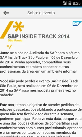 - For the first time, the will be an official SAP Inside Track São Paulo app.