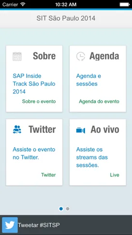 Connecting to the community is one of the main objectives of every SIT. With the app we hope to bring you closer to SIT São Paulo 2014. You can access event information, agenda, the live stream and interact on Twitter (#sitsp). The content of the agenda can be updated, keeping you up to date with the latest session changes.