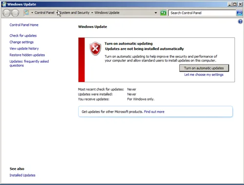 Start Windows update and turn on automatic updates.