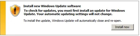 To be able to use Windows 2008 R2 with Windows update, you first must update Windows update.