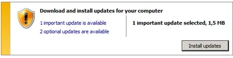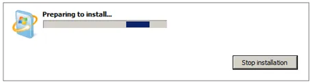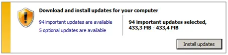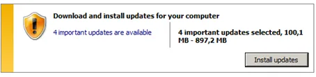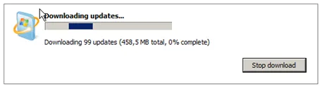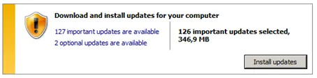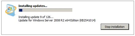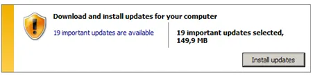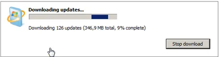 This will take a while to finish. During this first update run IE 9 will be installed. Afterwards, restart the computer. Windows will configure and install the updates.