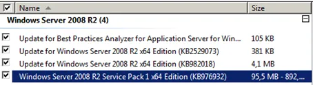 Important: Afaria needs Windows 2008 Server with SP1. Make sure SP1 is part of the updates to be installed list.