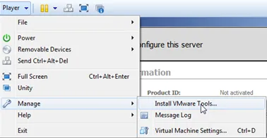 To install the VMWare tools, proceed as instructed by VMWare. Go to Manage and select Install VMWare Tools option.