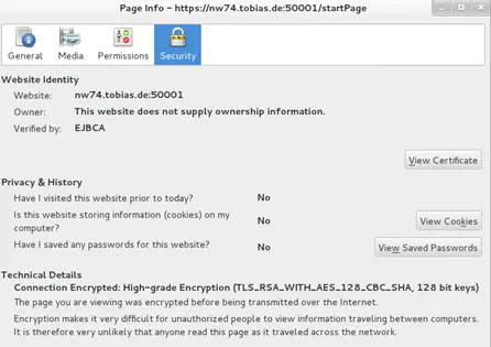 In case the server certificate is not part of the keystore, the tool prints an error message: