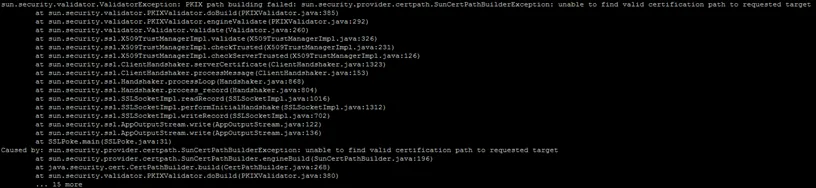 A Java class to test a SSL connection is available here: https://confluence.atlassian.com/display/JIRAKB/Unable+to+Connect+to+SSL+Services+due+to+PKIX+Path+Building+Failed+sun.security.provider.certpath.SunCertPathBuilderException 🔗