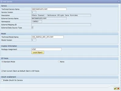After a fresh SAP Gateway installation, the flight sample service won’t be listed. The service is already installed, but is not visible in the service catalog. To add it, select the Add Service option:
