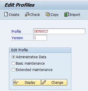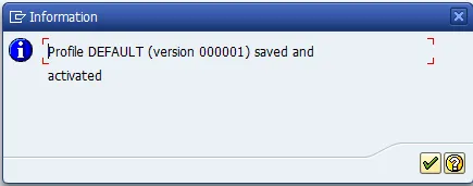 If the transaction is called for the 1st time, a profile must be generated first. We want to adjust the default profile, therefore a default profile must be cerated. Enter the profile meta data