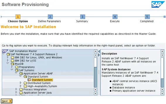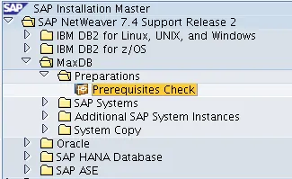 I am going to install SAP NetWeaver 7.4 Support Release 2 ABAP for MaxDB. First thing to run is the preparations step.