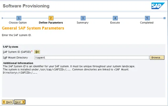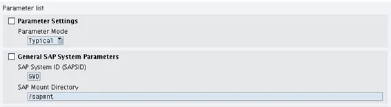 Specify the SID (here: GWD) and the mount directory (here: /sapmnt).