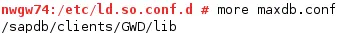 The last line is a include parameter. To add the Max DB libraries, it is just to create a conf file maxdb.conf in /etc/ld.so.conf.d/ and add the lib path to the new file.