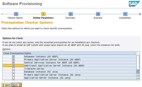 Select what sapinst should test. If nothing is selected, sapinst will check a basic set of requirements. This does not mean that after the check is done your system really meets all the requirements. So make sure you select what you are going to install to have a meaningful test result. As I am going to install NetWeaver ABAP, I selected the ABAP related checks.