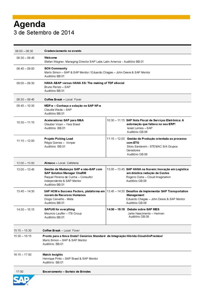 | Location | SAP Labs Latin America - Av. SAP, 188, São Leopoldo, RS |