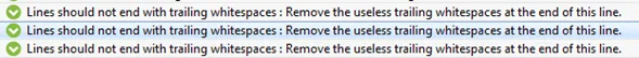 SonarQube is not only good in telling you that you have a tab indentation problem, but also shows that you have a lot of white spaces that make no sense: trailing white spaces at the end of a line.