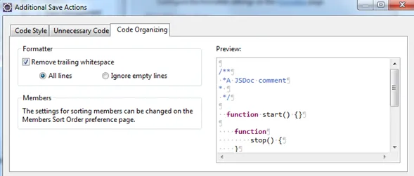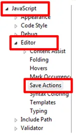 Go to Windows -> Preferences -> Javascript -> Editor -> Save Actions