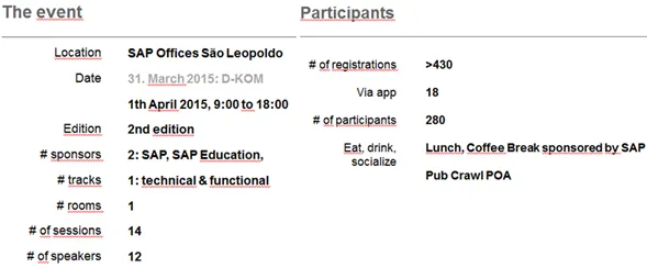 My event app allowed to sign up for the event, thanks to everyone that did so! Android users had also the chance to rate SIT sessions using the app. Apple was against a release of this feature before the event started, therefore iOS users could only rate sessions after the event was over. In total 45 people downloaded the app. While this looks nice, compared to the total number of participants the number is too low. For next SIT I’ll have to think about how to increase the number of people installing the event app. I guess it will help if the registration via app is the preferred way and opening up the web site event registration only later. Which implies to release the app way earlier.