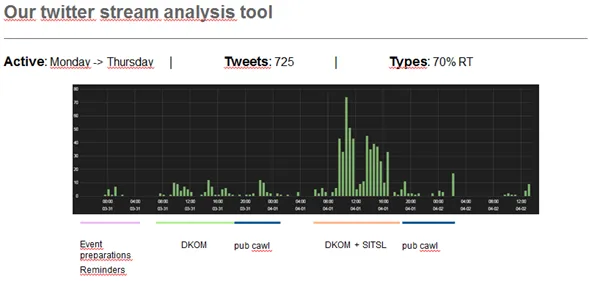 Tweets were analyzed with a variety of tools, with Kibana being the primary reporting tool.