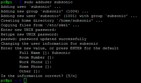 Subsonic will be run in the background at start as a service. For this to work, a subsonic user needs to be configured.