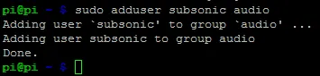 Add the user to the audio group, in caes you want subsonic to output audio.