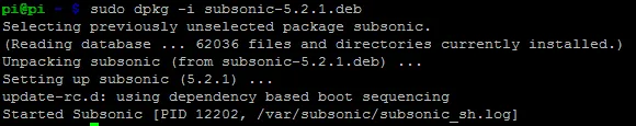 Command: sudo dpkg -i subsonic-5.2.1.deb
