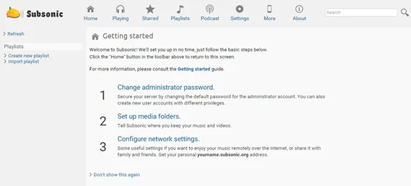 To be able to use Subsonic from the internet, just start it and check that everything is working correctly. Start subsonic: