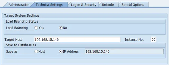 Target host: host name of SAP backend (BEP) system
