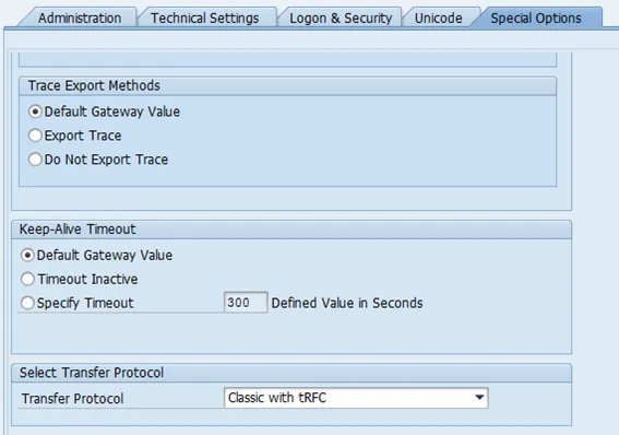 - Transfer Protocol: Classic with tRFC
