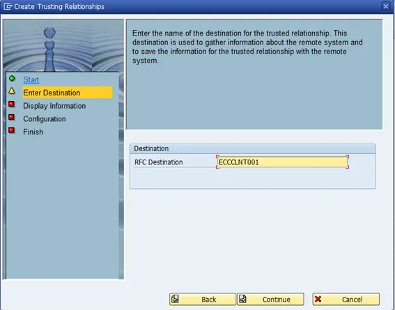 Inform a RFC destination: ECCCLNT001 (created in previous step)
