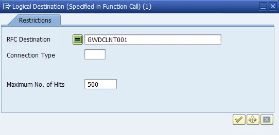 Destination: Give RFC destination: GWDCLNT001 (IMPORTANT: must have been created earlier on the BEP system)