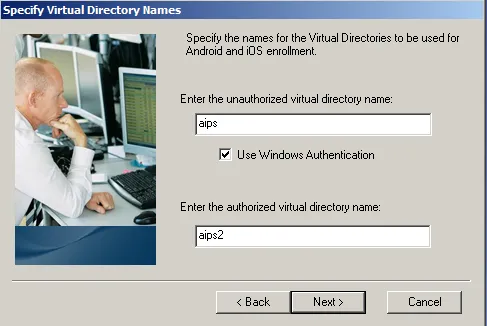 Specify the virtual directory of IIS to where the enrollment server site will be installed to.