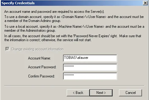 For the enrollment server to work, it must know the address of the SAP Afaria server. In my case both servers are on the same computer, so I can use localhost.