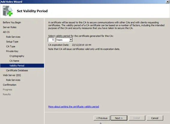 Validity period of certificate. While normally a CA’s certificate is valid for 10 or 20 years, mine will be only 5 years. But that value is up to you.