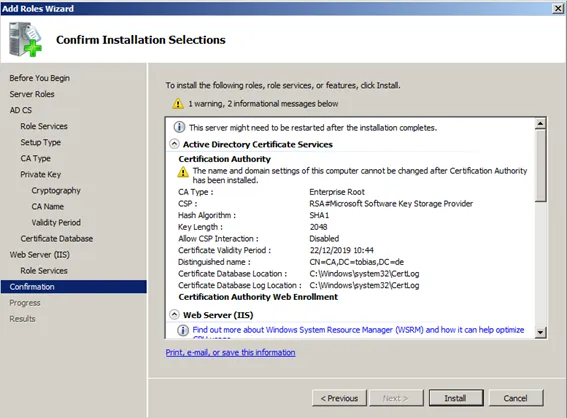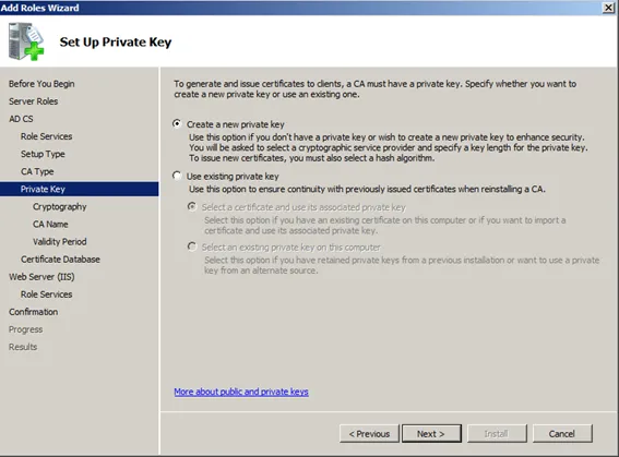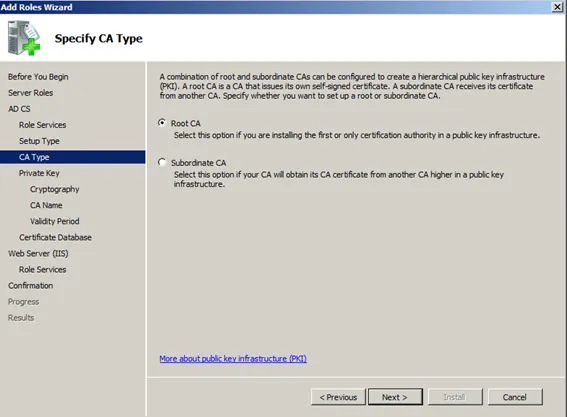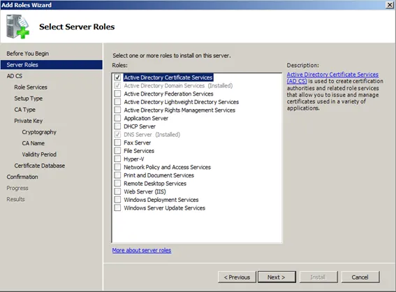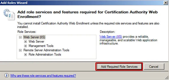 SAP Afaria needs to have a Certificate Authority (CA) available to emit certificates and to enroll iOS devices, or the make use of SCEP so your users can obtain their user certificate. Therefore, a new CA is installed. In Windows Server, select the add role option: