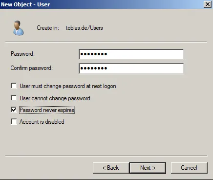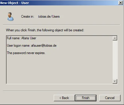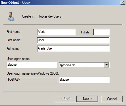 - User logon name: afauser@tobias.de
