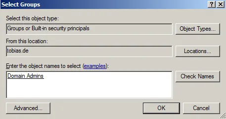 Select group: Domain Admins.