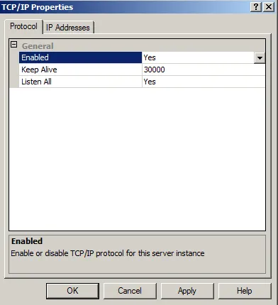 Now Afaria should be able to connect to SQL Server using TCP and port 1433 in a 64 bit environment.