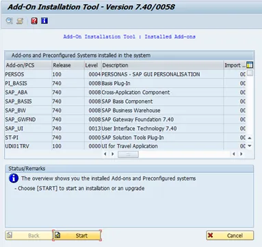 After decompressing, the add-on can be installed. To do so, click start.