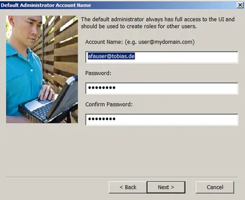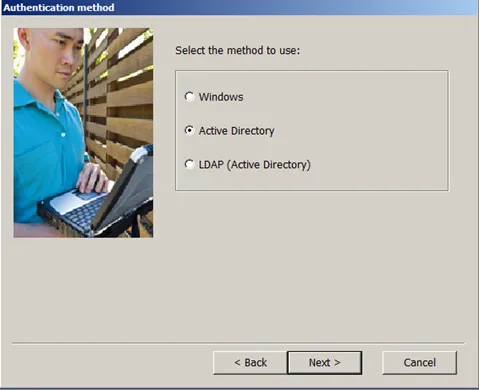 Select how the admin user will authenticate. Here I am using my Active Directory.