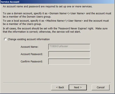 Select if you want to start the services. If you want to continue with the installation, do not start them now. The installation will now continue with the Afaria Admin setup.