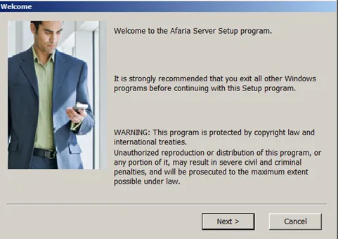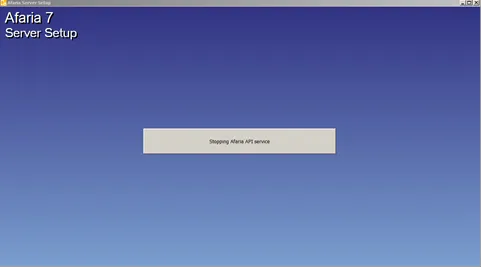 The setup program will stop the Afaria services. In case this is not possible, you are asked to do it manually or to restart the computer. In case the services are stopped successfully, the setup will start the Afaria Server installation.