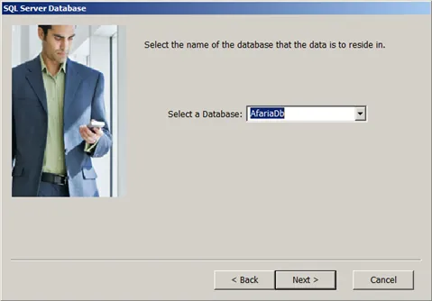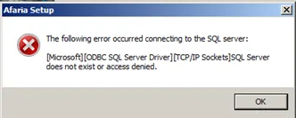 At this step, while testing the DB connection, I got an error message. The installer cannot connect to the Afaria DB. In my case, this was solved by starting the MSSQLServer process (for some reasons, SQL Server wasn`t started anymore).