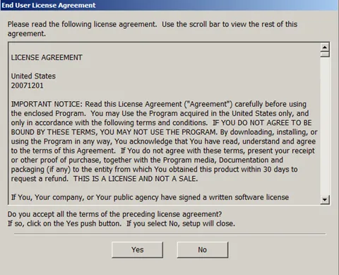 Start the Afaria Server update. First agree to the license agreement, of course, only when you have read the license and agree to it.