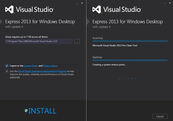 Accept the license term to start the 7 GB install