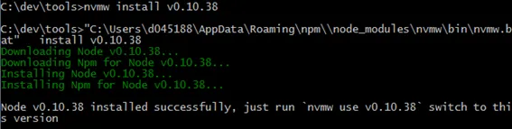 Command: nvmw install v0.10.38