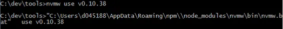 Command: nvmw use v0.10.38