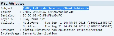 The example screenshots show CN=WDP, OU=SSL Client. These are the standard values of the self-signed certificate of WD client PSE. In case you do not have a CA available, self-signed certificates like the above can be used too.